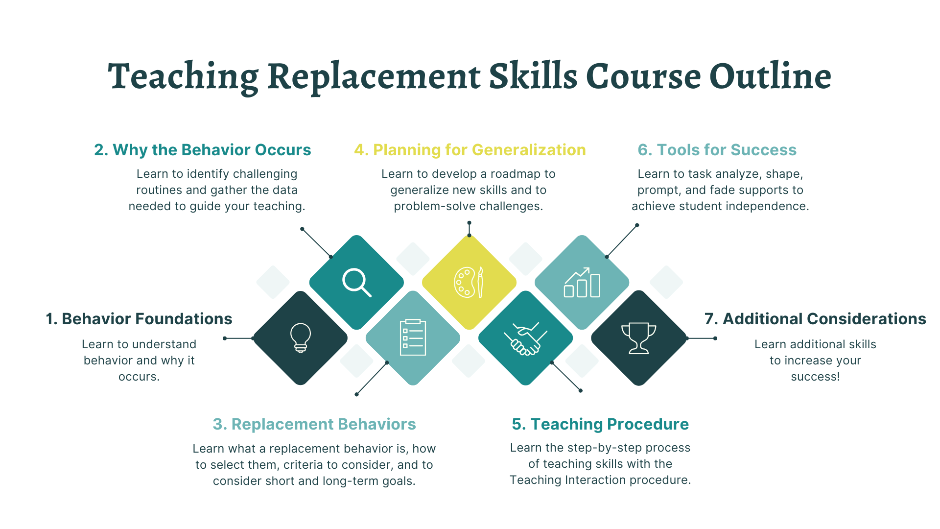 A step-by-step course that shows you how to identify skill deficits, teach replacement behaviors effectively, and support generalization across environments.